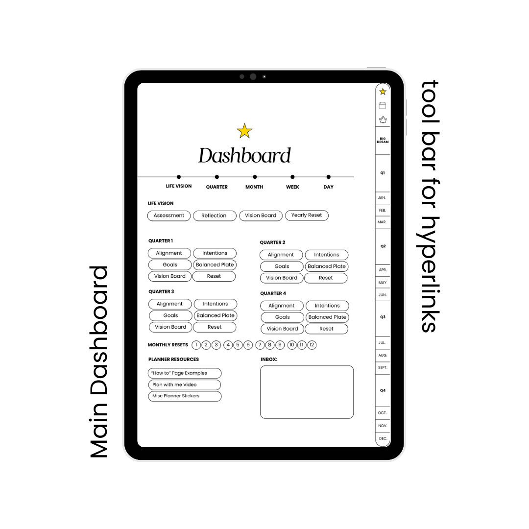 - Hyperlinked Navigation: Move seamlessly through your planner with easy-to-use hyperlinks, including Apple Calendar and Reminders integration for streamlined planning.