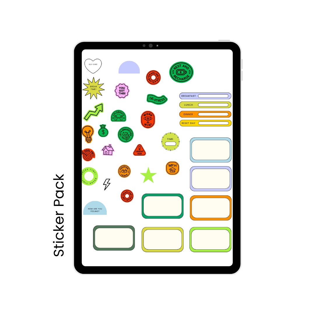 - Exclusive Sticker Pack: Personalize your planner with a fun and functional set of digital stickers.